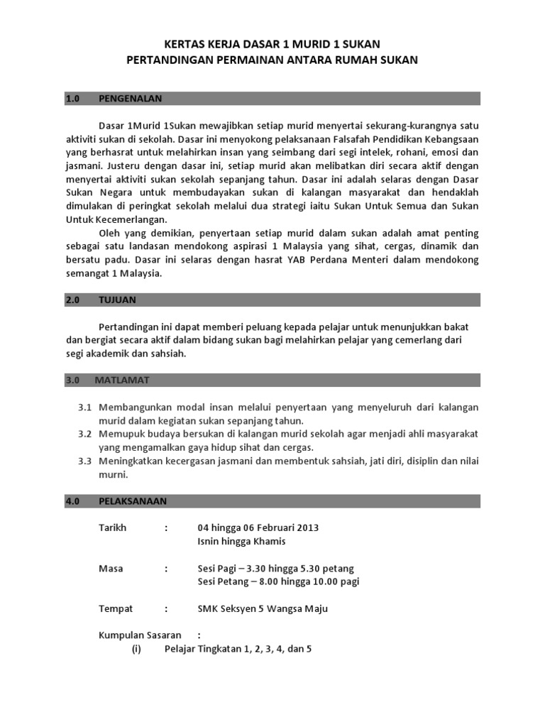 Doc Kertas Kerja Pertandingan Sukan Antara Rumah Sukan Sktt 2014 Sk Taman Tawau Academia Edu