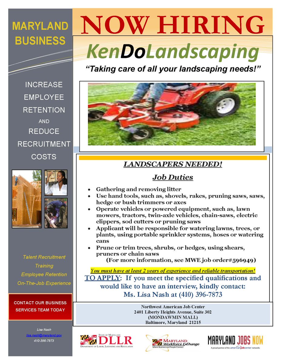 Baltimore Jobs Resources Moed On Twitter Now Hiring Landscapes Needed At Kendo Landscaping If Interested Call 410 396 7873 To Schedule An Interview Baltimore Baltimorejobs Https T Co Fyjyq2uwqu Twitter